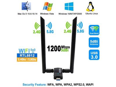 Tech Wireless USB Wifi Adapter Dual Antenna Dongle 5dBi 802.11AC