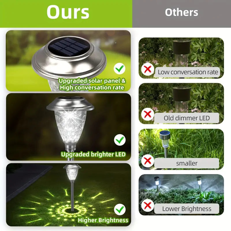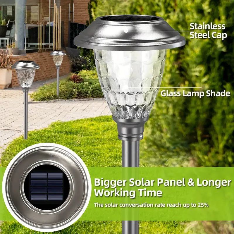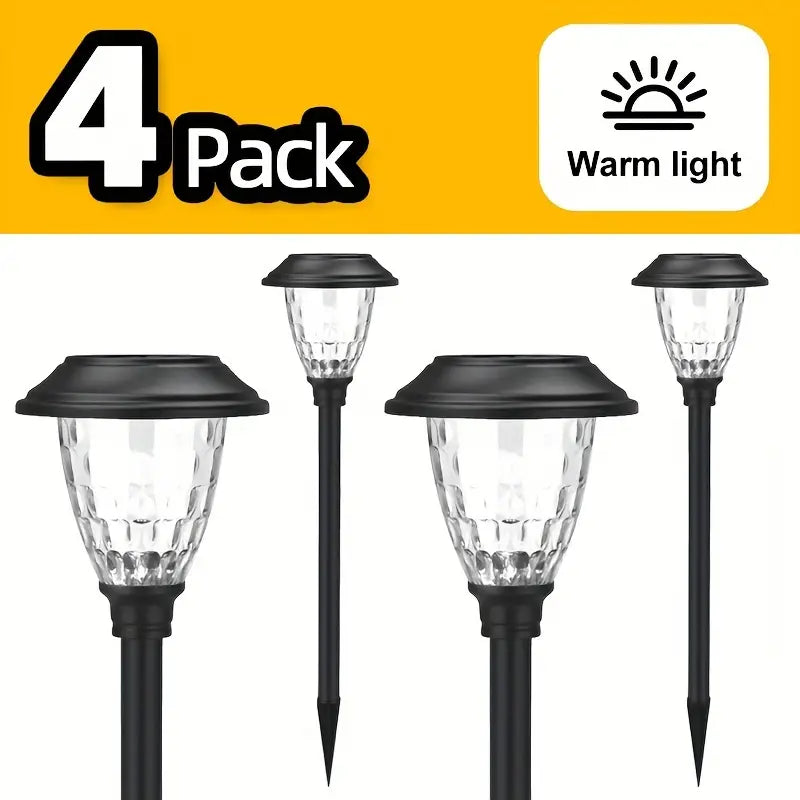 4pcs Solar Garden Lights - Waterproof, Super Bright for Up to 12 Hours, Stainless Steel Outdoor Pathway & Landscape Lighting