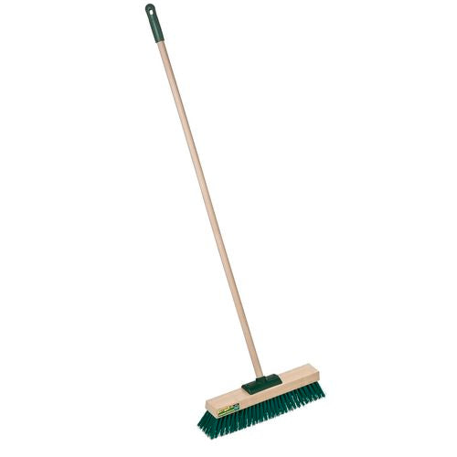 No rusting parts, this all purpose outdoor broom is ideal around the home, building site or industrial work area. Built tough with the best quality materials. Unique bracket design secures the handle deep inside the broom head locking it in place. Stiff bristles to shift wet leaves, dust and heavy debris.