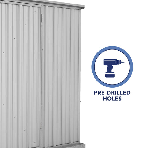 This model of the Absco Sheds Space Saver is designed as a narrow, neat storage shed that can be tucked away and provide much needed space. The door clearance measures at 750mm in width by 1725mm in height. Manufactured using high tensile quality steel in Brisbane, Australia you be assured that these Australian Made sheds can withstand tough Australian conditions.