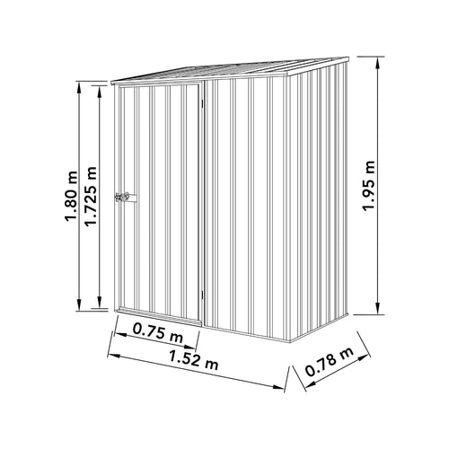Absco Sheds 1.52 x 0.78 x 1.95m Space Saver Single Door Garden Shed - Zincalume
