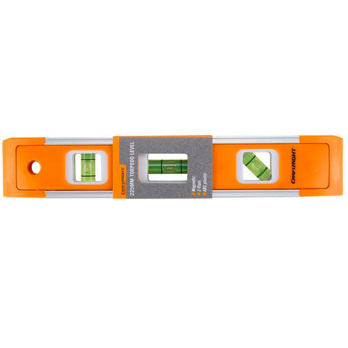 This magnetic torpedo level features a solid aluminium frame with top-read window and a strong, magnetic edge for durability and ease of use. There are three vials to read plumb, level and 45 degrees.