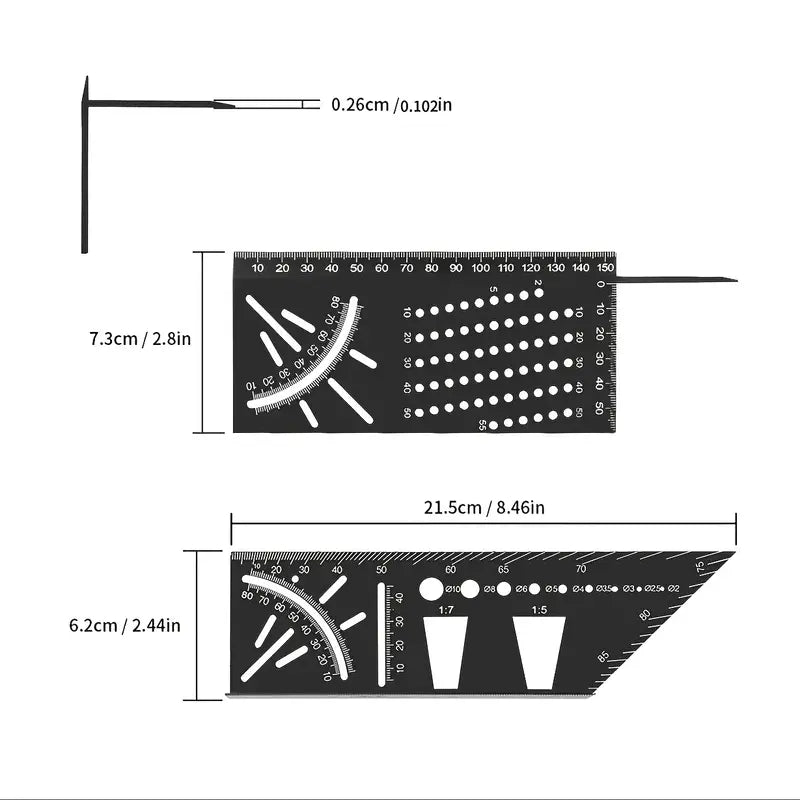 Aluminum Alloy Woodworking Square Size Measure Ruler - 3D Mitre Angle Measuring Template Tool - Carpenter's Layout Ruler Gauge Woodworking Accessories - Gifts For Men Dad Father Husband