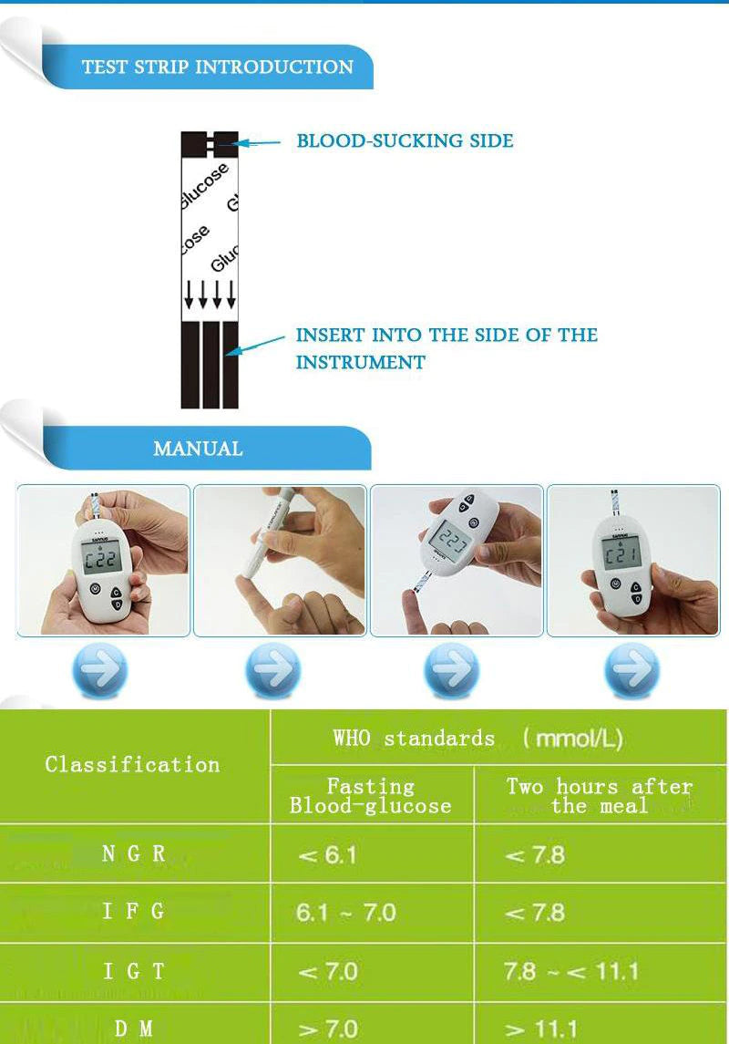 Test range: 20-600mg/dL & 1.1-33.3mmol/L