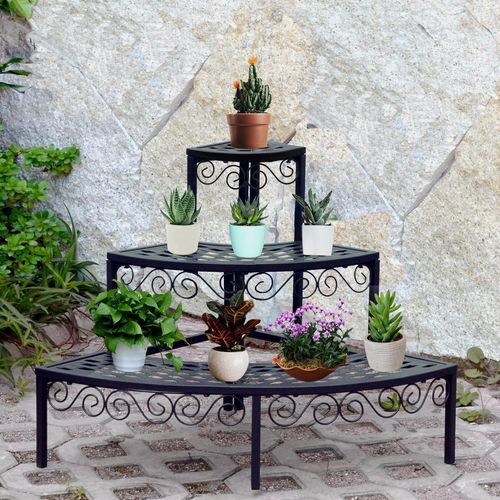 Garden Lotus Collection 3 Tier Corner Metal Plant Stand