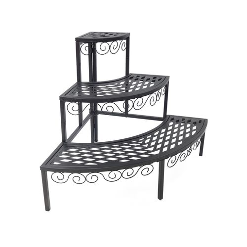 Display your favourite plants with pride on this Lotus Collection 3 tier metal plant stand. Ideal for corner space, this stand is constructed from a durable powder coated steel frame.