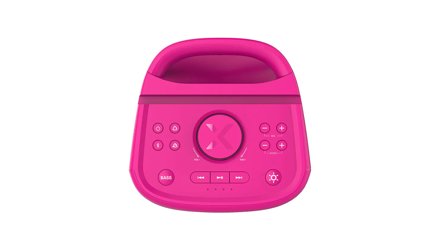 - Accessible Controls: Conveniently manage your music using its user-friendly control panel. This speaker enables you to adjust mic volume and echo settings, toggle LED light on/off, and play or pause your content whenever you want. It also features a rotary volume knob for tweaking the speaker’s sound levels.