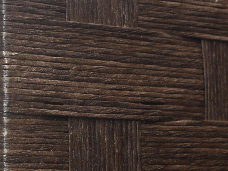 The plant fiber cord takes colored dye beautifully, and is interwoven with quarter inch wood dowels to create a pattern similar to classic rattan folding screens.
