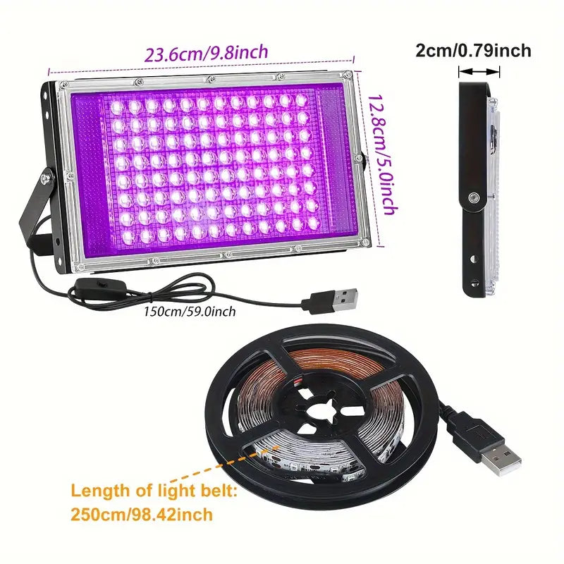 Ultra-Bright 98 LED Black Light & 248.92cm Strip Kit - USB Powered