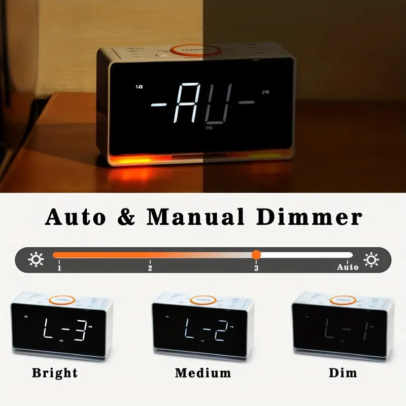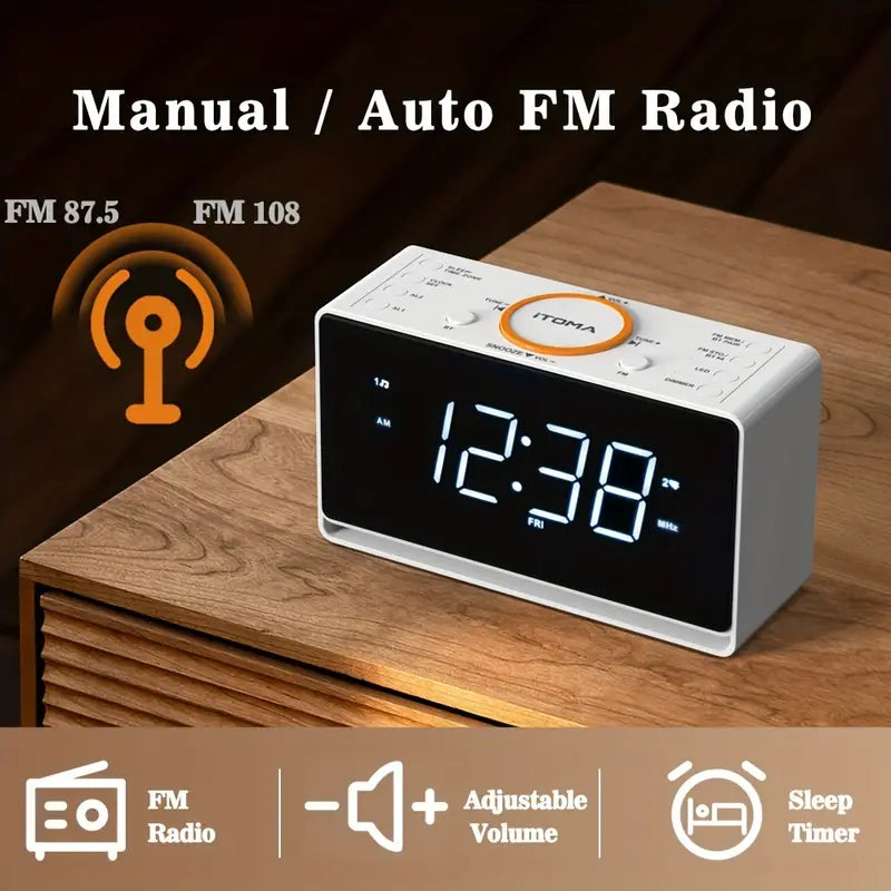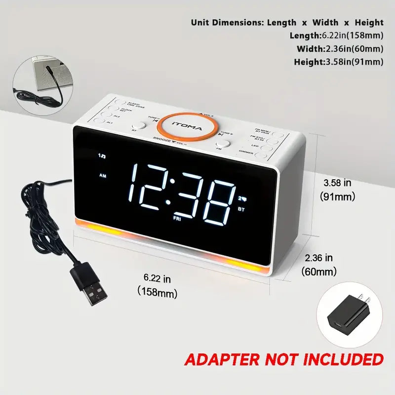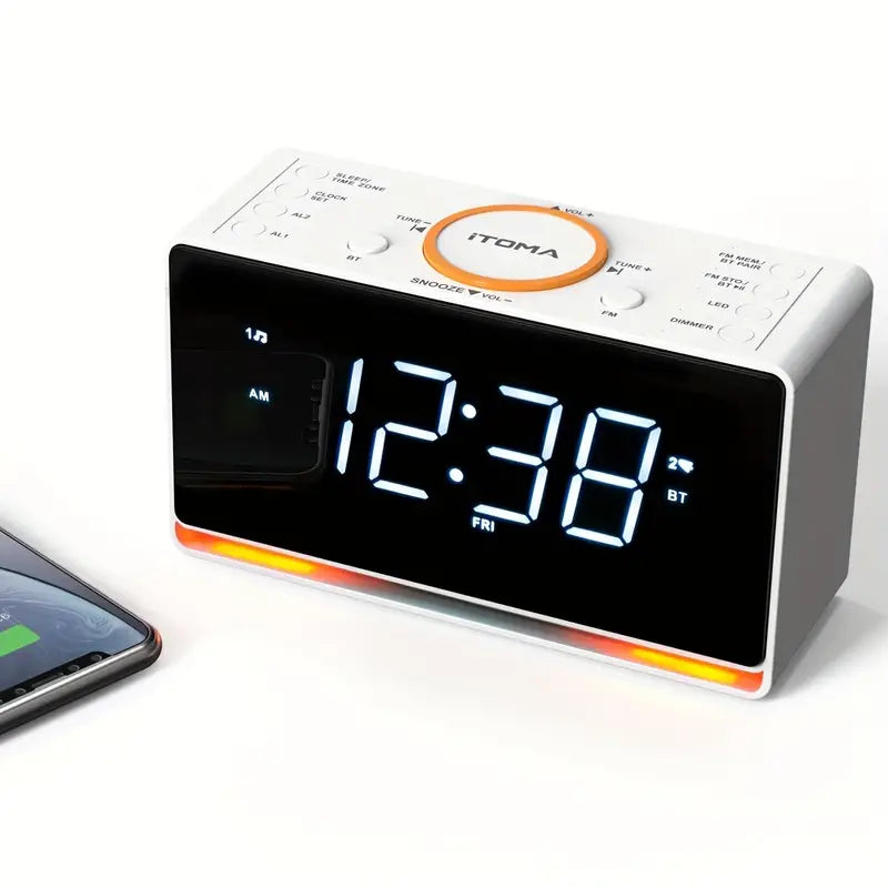 Clocks Alarm Clock FM Radio, 3.56cm White LED Display Clock With Bluetooth