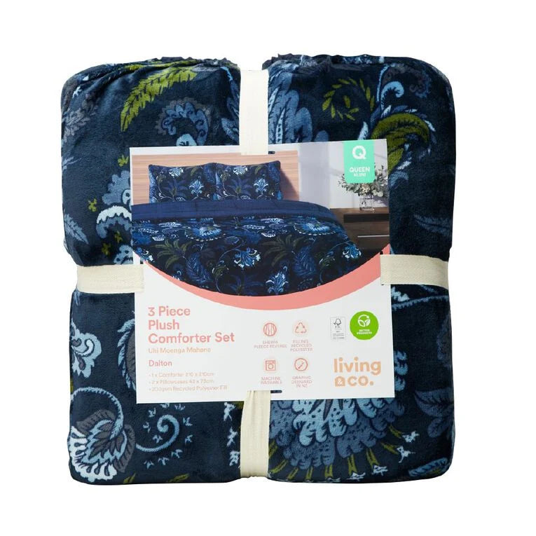 Bedroom Living & Co Plush 3 Piece Comforter Set Dalton Green Queen