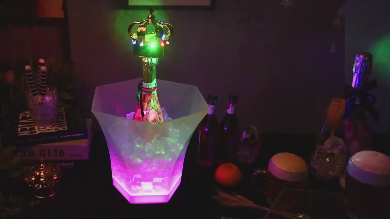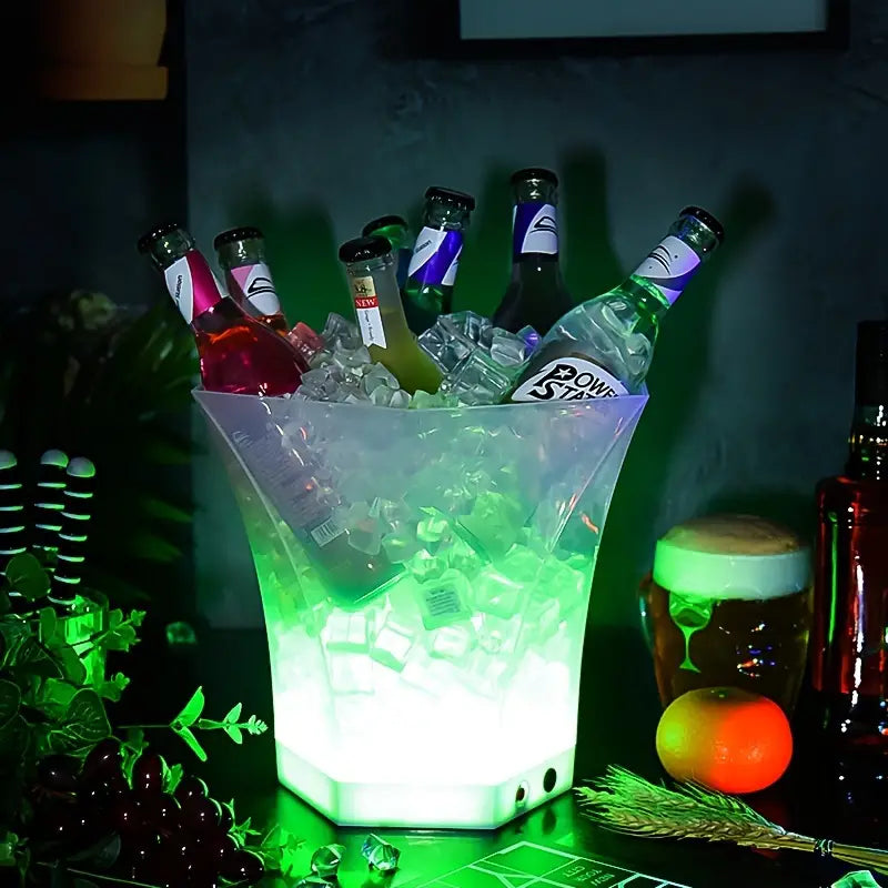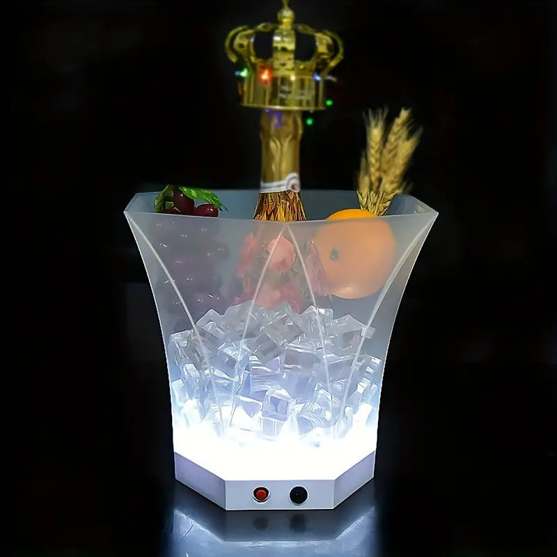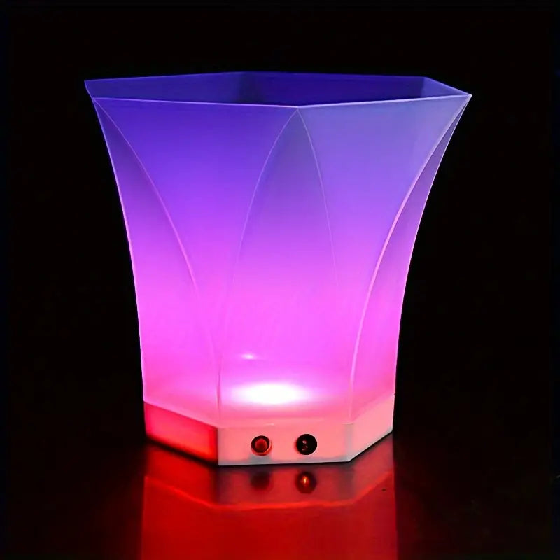 LED Light-Up Ice Bucket - Colorful Flower Pattern, Durable Plastic, Perfect for Bar & KTV Parties, Requires 3 AAA Batteries (Not Included)