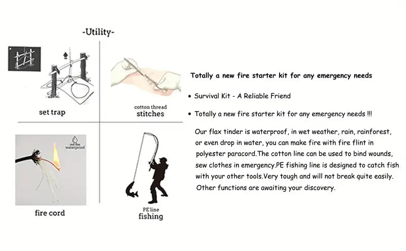 4、Making Fire To Warm Yourself Up, Setting A Trap To Get Foods, Binding And Lowing Goods, Weaving Bracelets As EDC Tools Or Gifts.