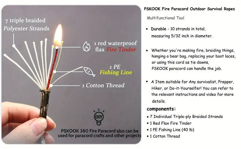 PSKOOK Survival Paracord Parachute Fire Cord Survival Ropes