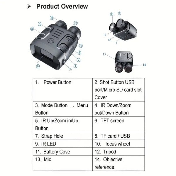 Equipped with infrared night vision technology, this binocular device allows you to see clearly in low light conditions and even in complete darkness.