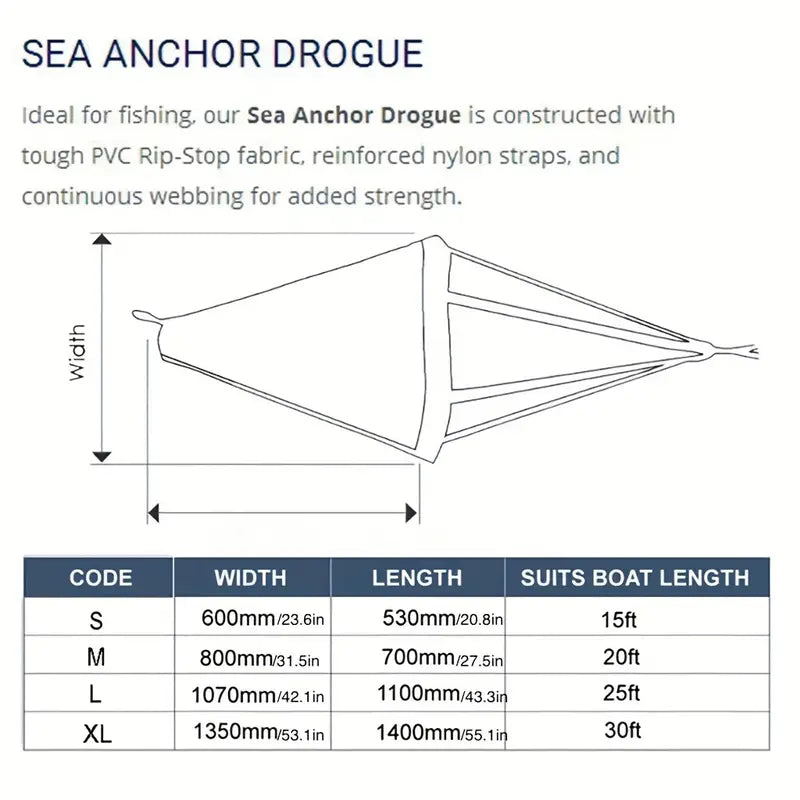 100% brand new material. Provides controlled drag and stability in different sea conditions. Anglers can use it to effectively slow down the speed, when drifting over fishing grounds. Can also provide directional control of a sailboat in case of steering failure. Manufactured from a durable heavy duty PVC material with reinforced webbing straps Compact design, can be easily stored away flat in areas where space is limited Suitable for power boats, sail boats, inflatables, Jet skis / PWC & kayaks