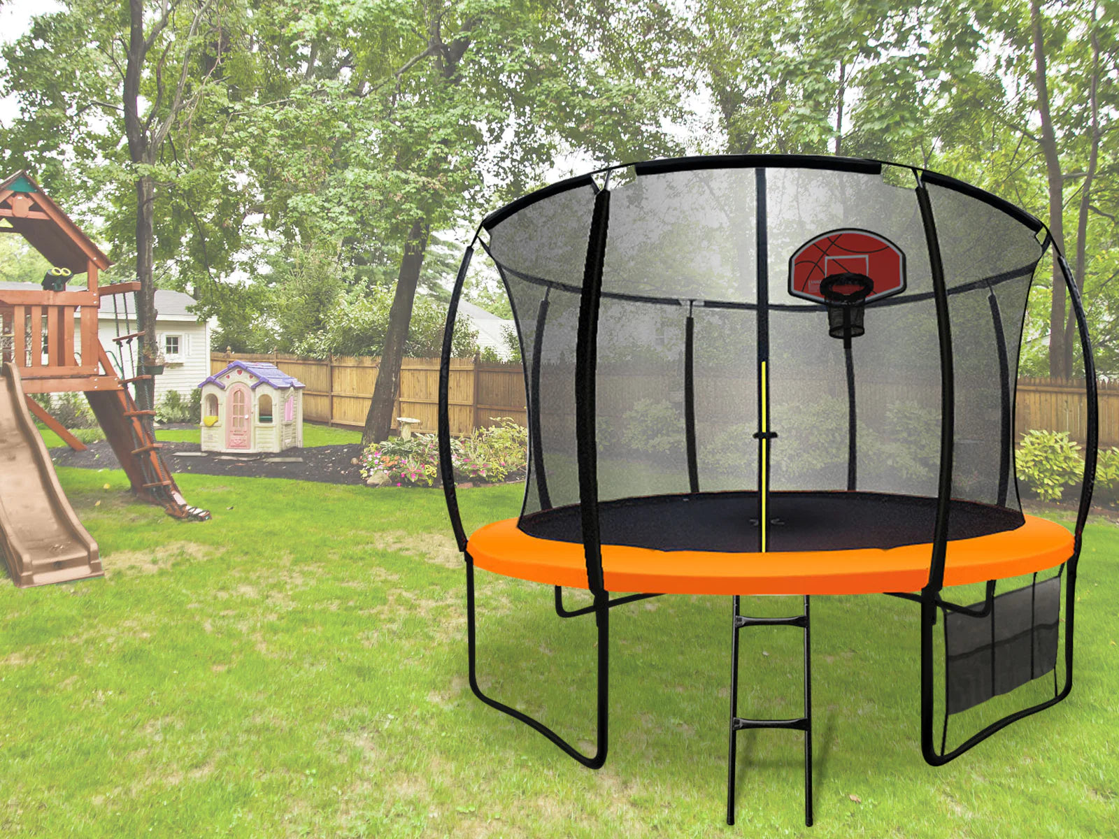 The ladder and shoe bag are also matched, can let the shoes be well accommodated and get on your trampoline with ease.