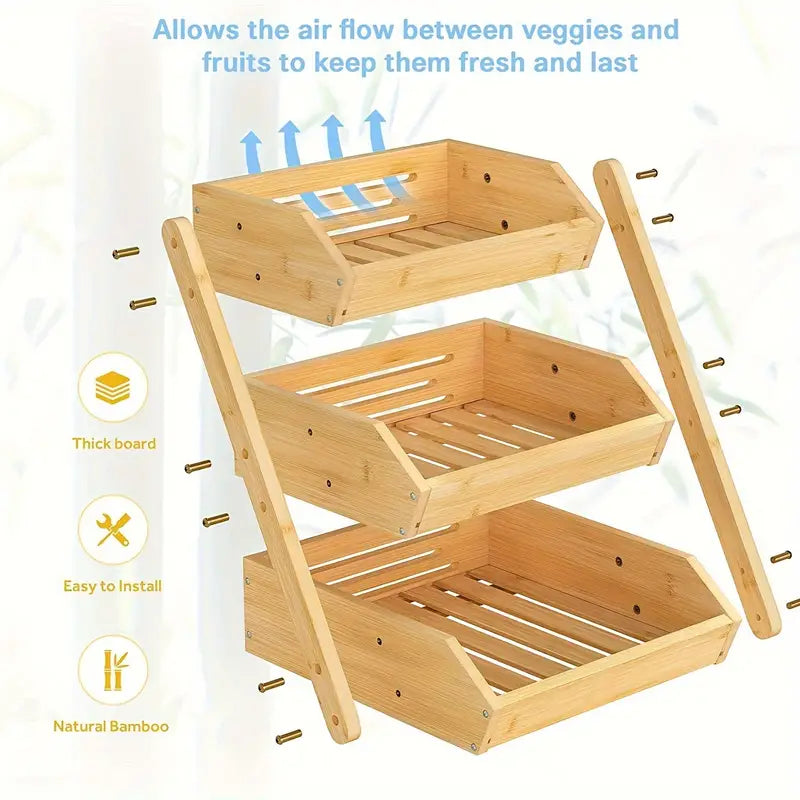 1pc Bamboo 3-Tier Fruit and Vegetable Storage Basket