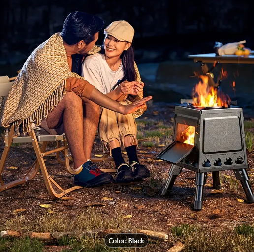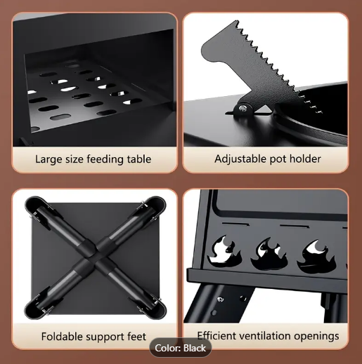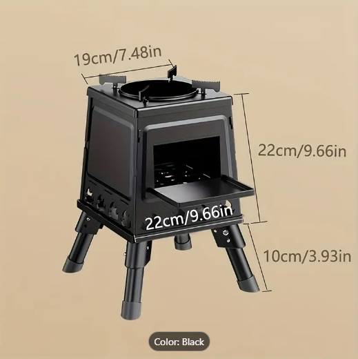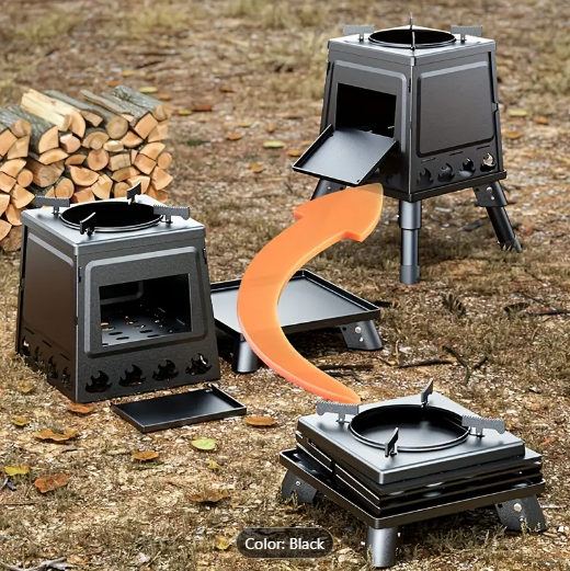 Portable Folding fire pit stove - Compact camping fireplace with firebox opening, ash pan & stability legs - Heavy-Duty Carbon Steel outdoor oven for camping, backyard, picnic, beach - No Electricity Needed - Ideal for Cooking, Boiling, Roasting, Heating, Backyard Barbecue, Foldable Design, Robust Construction, Campers And Hikers