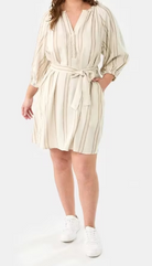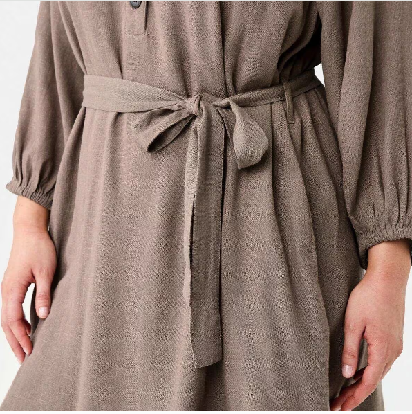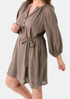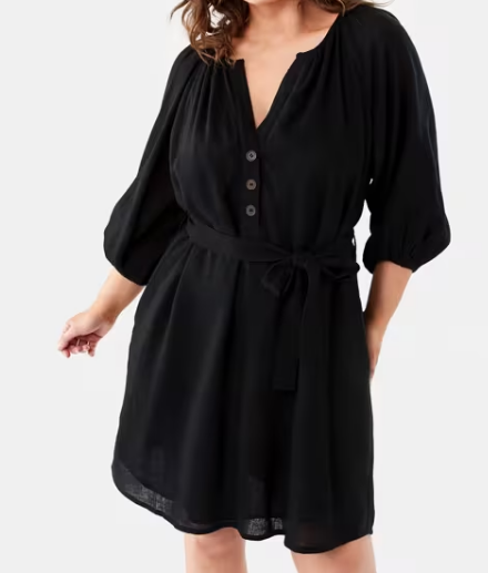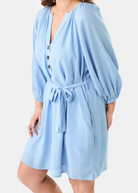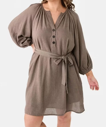 Stay stylish and comfortable in this Elbow Sleeve Linen Blend Mini Dress, crafted from a blend of viscose, linen and cotton. Featuring a notch neckline with button placket and gently puffed elbow sleeves with elastic cuffs, it combines ease with elegance. This dress is finished with an adjustable waist tie and flared hem for added style, making it perfect for everyday wear.
