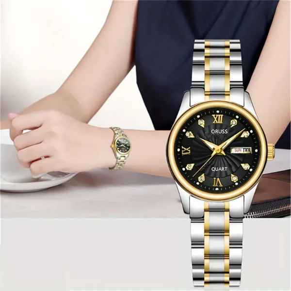 Luxury Rhinestone Automatic Quartz Watch Waterproof Calendar Luminous Analog Watch For Daily Life Business Travel Vacation Date Watch