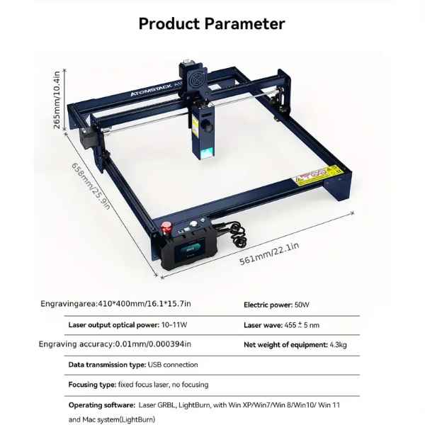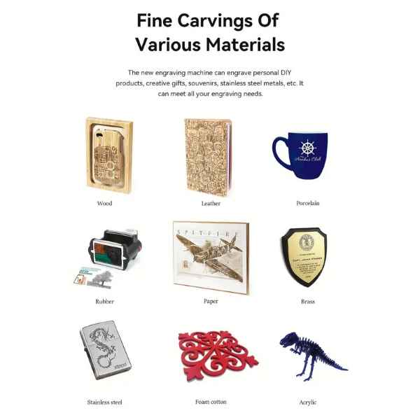 Engraver Machine with 0.06x0.08mm Dual Compressed Spot for Wood and Metal, Acrylic, Leather.