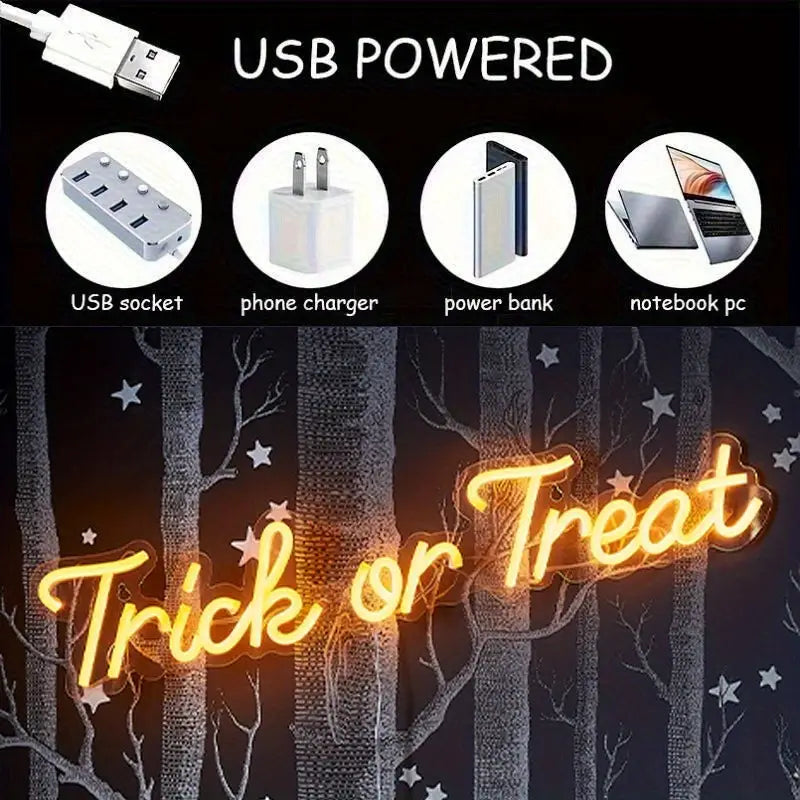 Halloween Customizable LED Neon Sign "Trick or Treat" - USB Powered