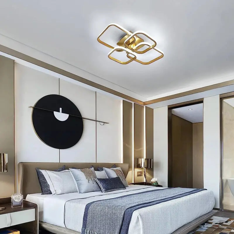 1pc Modern Design LED Ceiling Light, Square Ceiling Light, Cold White Light 6000K, For Living Room, Bedroom, Dining Room, Office, Golden