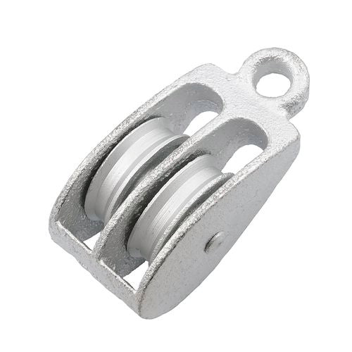 Zenith 50mm awning pulley features double wheel for smooth operation and a galvanised finish for increased longevity. The pulley is designed for use when setting up awnings or shade sails.