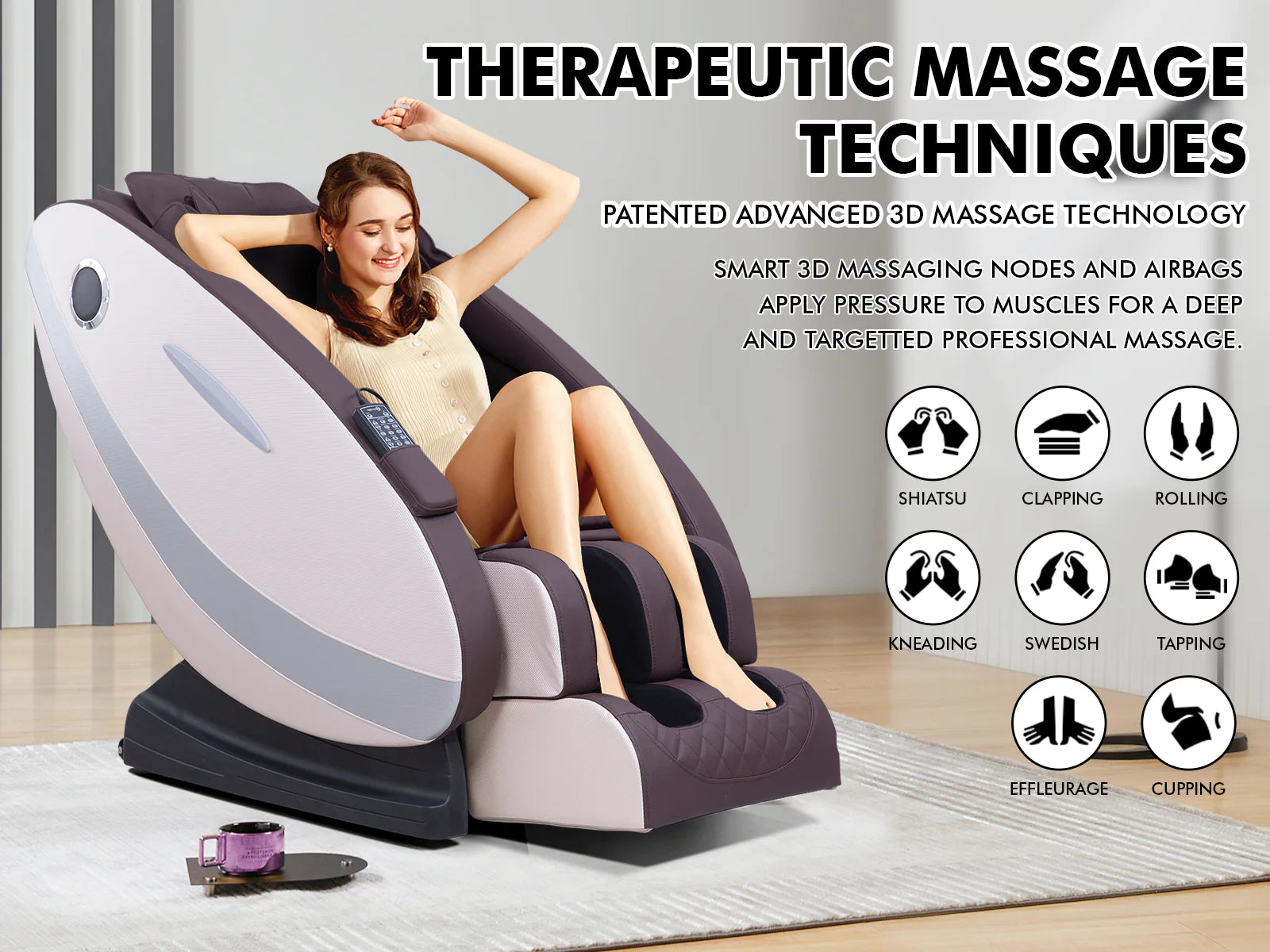 As you sit inside the capsule-design chair, you can begin a series of zero-gravity relaxation brought about by the many intelligent massaging functions built into this ensemble.