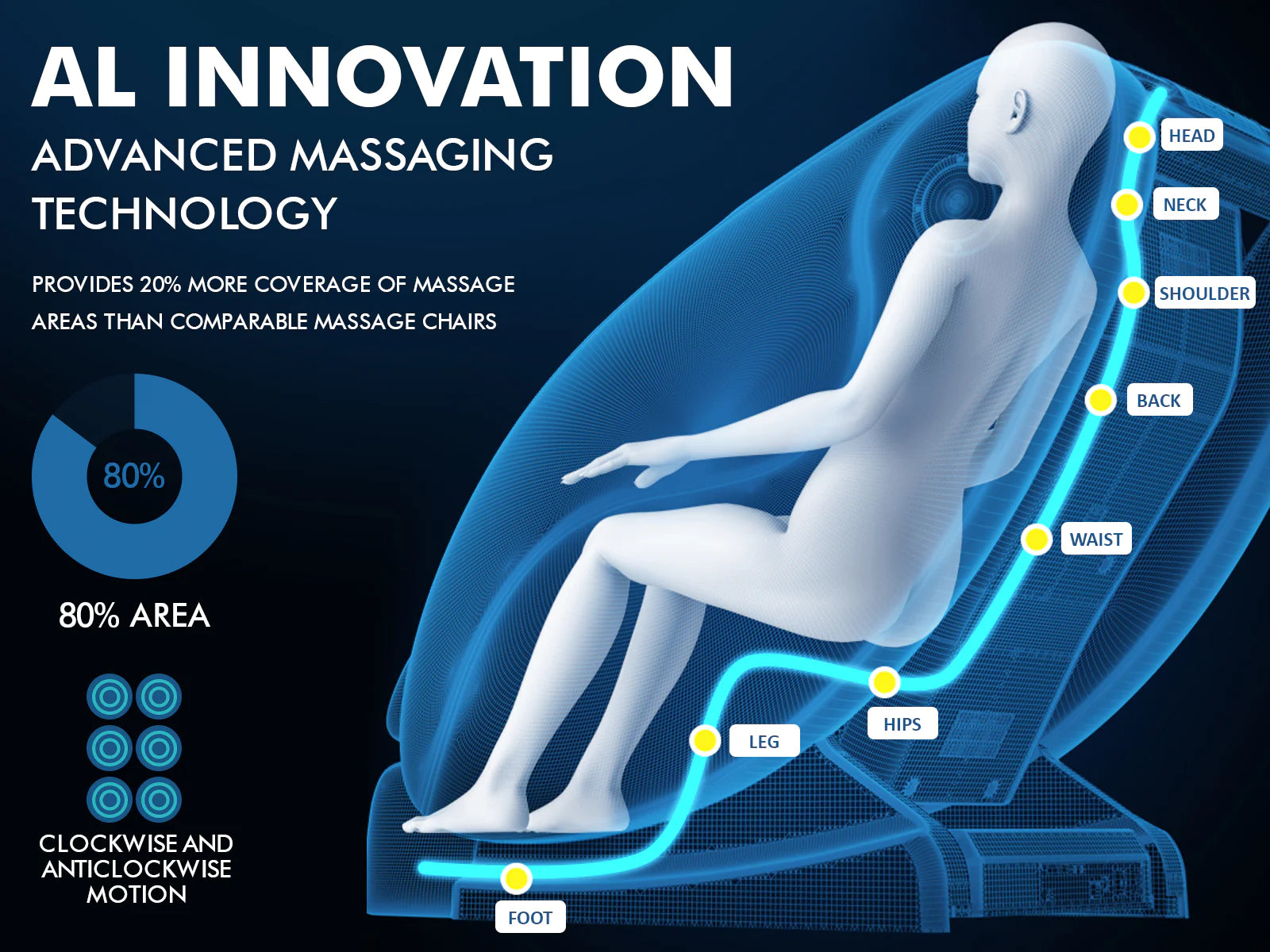 It is literally jam-packed with so many premium features, such as speed and intensity levels, that the best way to know them is to experience the chair itself. In fact, you get more massaging points that are focused and concentrated on any part of your body than from any traditional massage chairs.