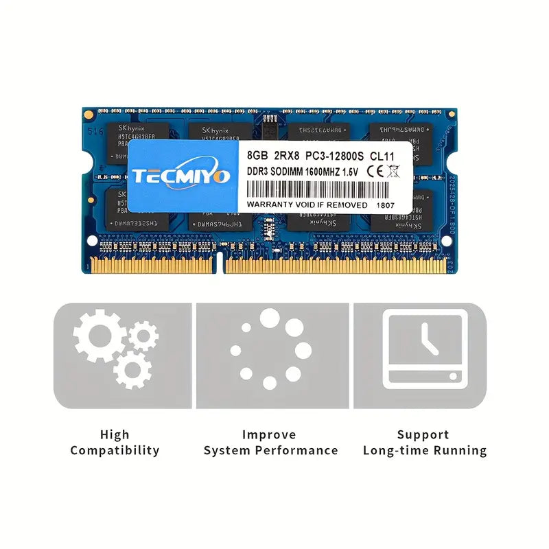 TECMIYO 16GB ( 2X 8GB ) DDR3 1600MHz PC3-12800S Laptop Memory Ram 2RX8 SODIMM 1.5V Non-ECC Memoria For Notebook