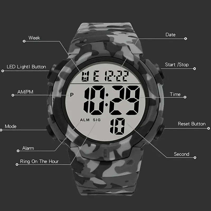 Watches Camouflage Digital Watch For Men, Waterproof Sport LED