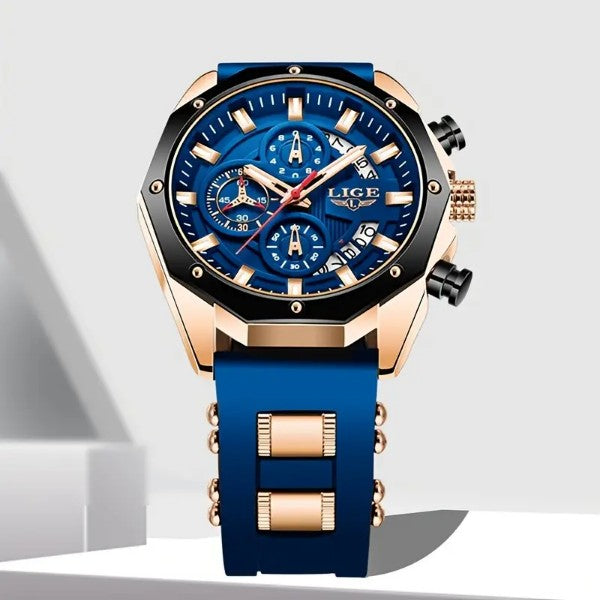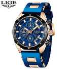 Watches LIGE Mens Watch Silicone Strap Waterproof Sport Quartz Watch-Gold/BLACK