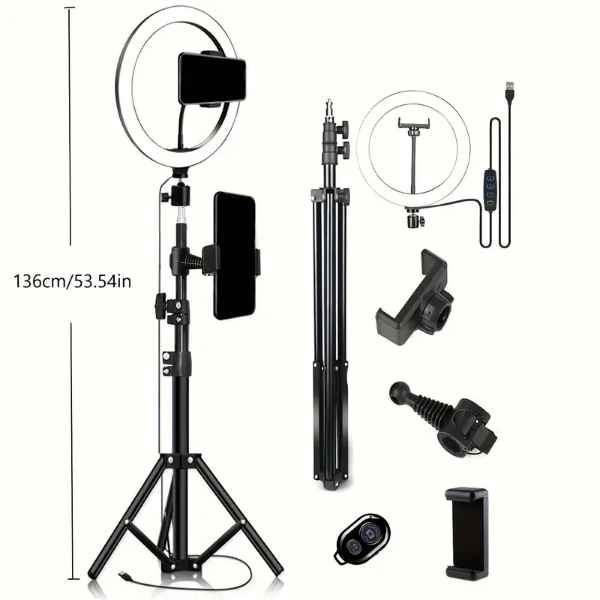 53.54-inch Extendable LED Camera Ring Light with 3 Color Modes and 12 Brightness Levels, USB Powered for Makeup,