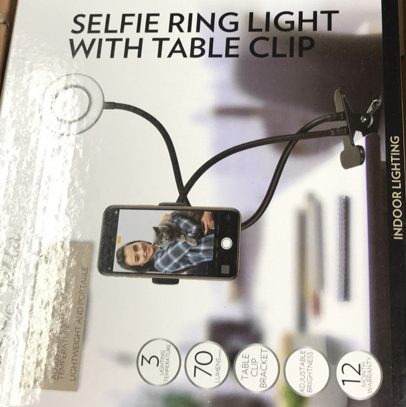 Tech - Selfie Ring Light with Table Clip is backordered and will ship as soon as it is back in stock.