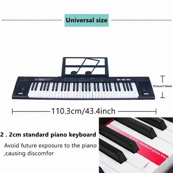 This is an ideal gift for all age groups, suitable for beginners, adults, and music enthusiasts. It is also a good choice for festivals, such as holidays, birthdays, Christmas, Thanksgiving, New Year, etc. The package includes a piano keyboard, music stand, charging cable, and microphone.
