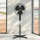 Beat the heat with this black 40cm Pedestal Fan. It features a traditional design with three speed settings and an oscillating head for a wide coverage area.