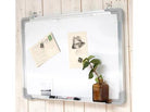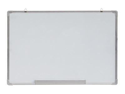 This practical and sleek magnetic dry erase board with an aluminum frame and safe plastic corners is designed to improve your work space.