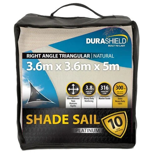 Outdoor Durashield Shade Sail 3.6 x 3.6 x 5m Natural Triangle