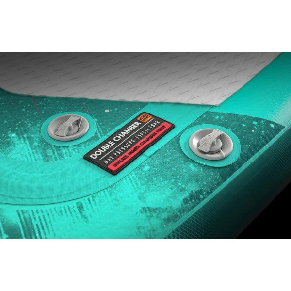 The Double Chamber Construction is a signature technology of AZTRON and it applies on all the inflatable board products. The inner chamber offers a 50:50 air distribution with at least 100 litres of safety buoyancy which ensures rider safety effectively. The additional inner chamber with extra air pillars makes a sidewall at the standing area that makes the board 30% stiffer. The Double Chamber structure creates the feeling of paddling on a hard board.