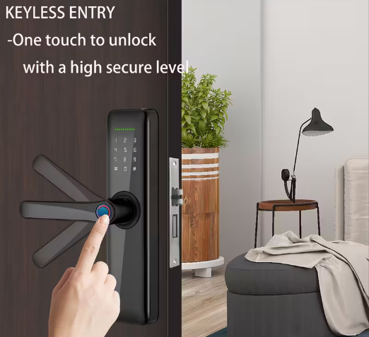 Fingerprint Keyless Entry, Digital Code and Card Unlock, BLE Wireless APP Control, Powered by 4pcs AAA Alkaline Batteries(Battery not Included), Suitable for Entry and Front Door, Office, Hotel, Apartment