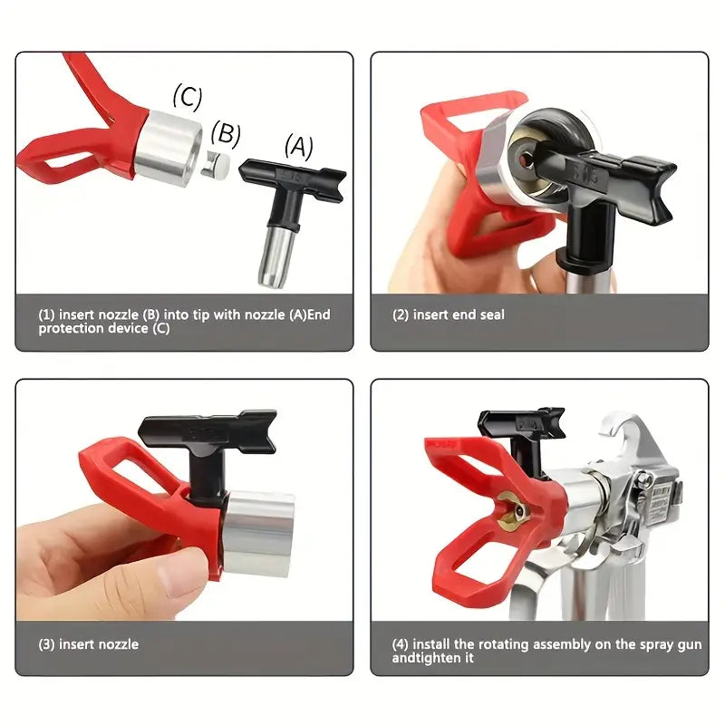 Easy to Install and Operate: you just need to use the nozzle to seal the nozzle into the protective seat (the protective seat is not included), then insert the nozzle into the protective seat and rotate it to complete the installation of airless spray nozzles, which is easy and convenient, no tools are required, saving time and effort.