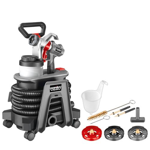 This convenient painting station provides storage for the air hose, additional spray nozzles, viscosity cup and cleaning accessories, so you will never lose anything from your kit again. With the adjustable spray pattern, spray width and flow you have full control to better suit the task at hand.