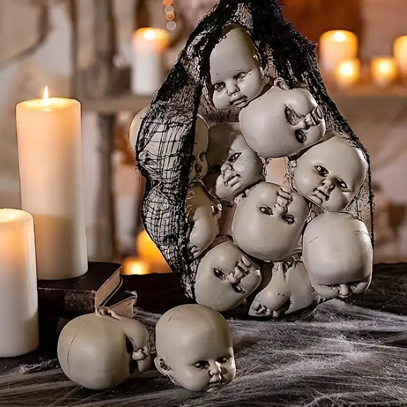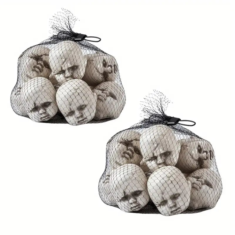 Halloween 18pcs Halloween Decor Set: Spooky Head Ornaments with Netting
