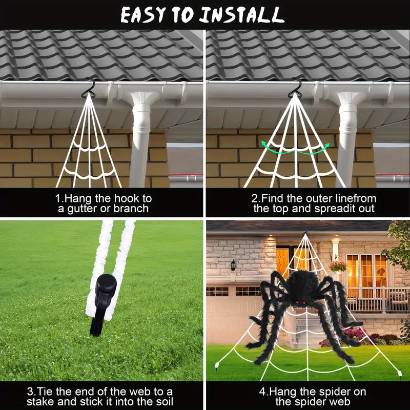 Equipped with a 48-inch large spider, 20 miniature spiders and 40g of spider silk, it makes the spider web costume look more realistic, creates a more scary atmosphere, and makes your Autumn Festival decoration more attractive
