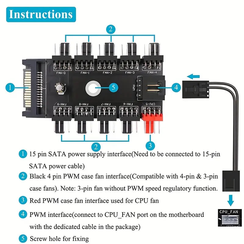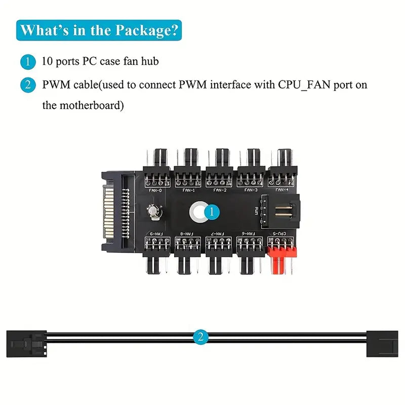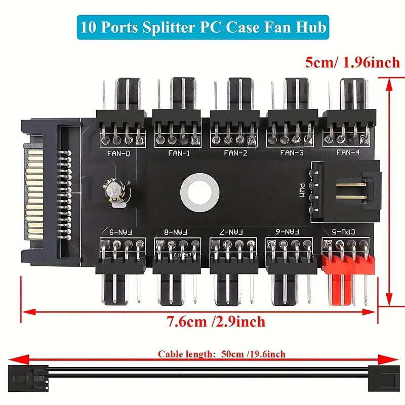 4-Pin PWM Fan Power Supply Cable 1 To 10 Way Splitter Hub 15 Pin SATA Powered PC Case Motherboard Fan Power Extension Cable Cord For ATX Computer Case 4-Pin And 3-Pin Cooling Fans
