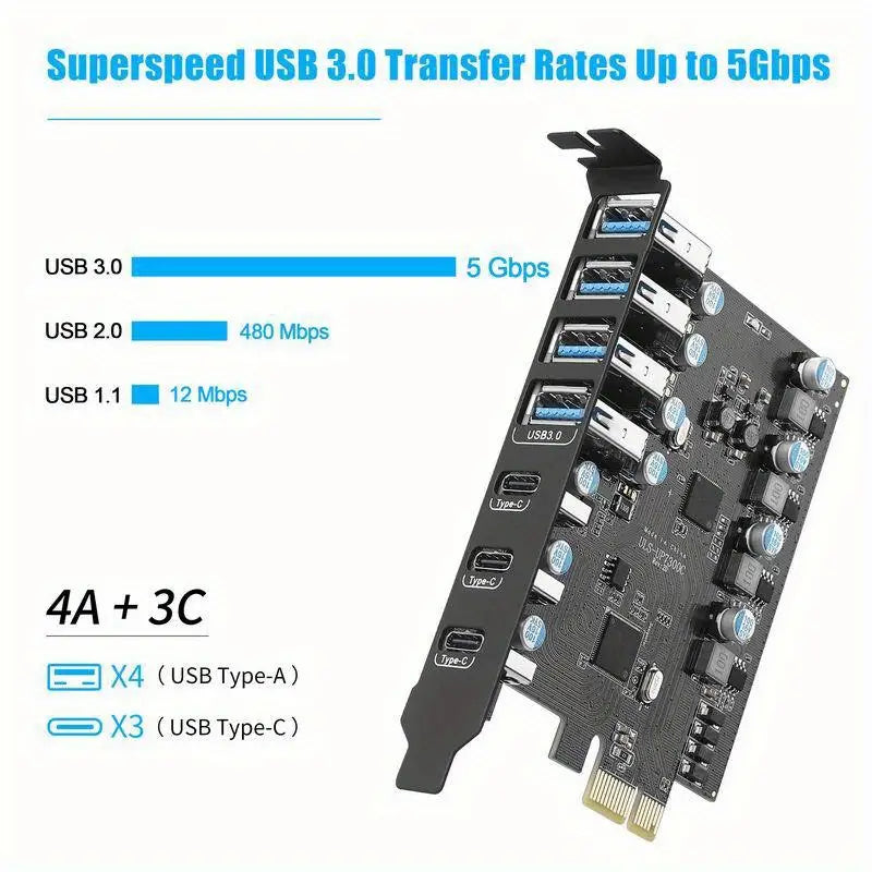 Tech USB 3.0 Extension Card, 7-port Built-in USB3.0 Adapter, 4 USB 3.0 USBA Plus & 3 USB-C Ports