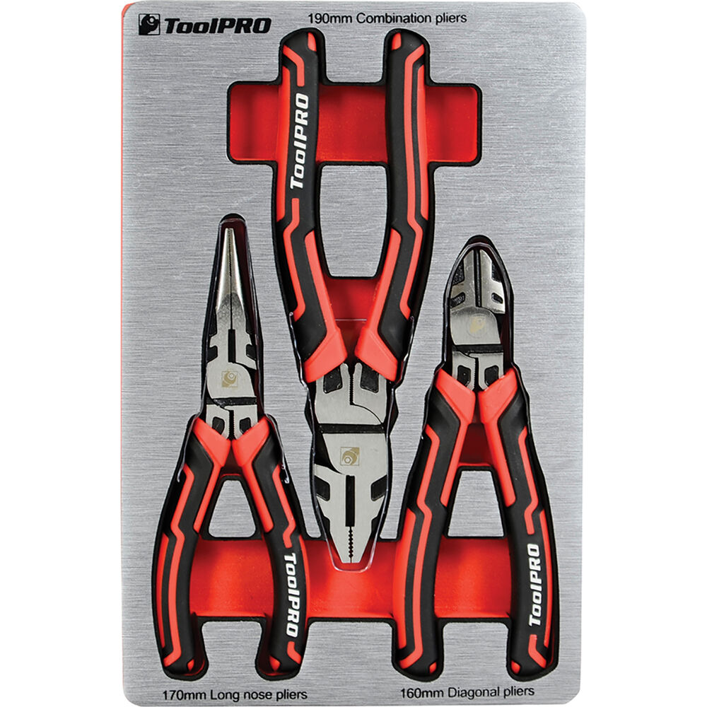 - Includes combination, diagonal cutting and long nose pliers to suit many common household and automotive applications