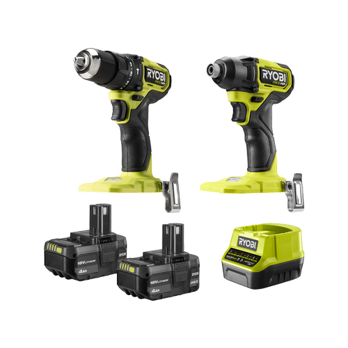 The RYOBI 18V ONE+ HP™ Brushless Compact 2-Piece Kit includes the essential tools you need for drilling and screwdriving applications. This kit comprises an 18V ONE+ HP™ Brushless Compact Impact Driver and Hammer Drill, 2 x 18V ONE+ 4.0Ah Batteries, and an 18V ONE+ 2A Fast Charger.